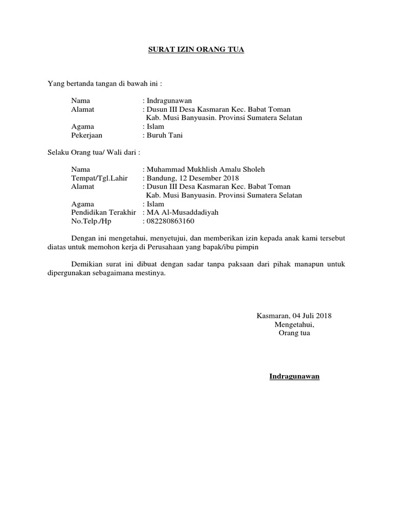 Contoh Surat Izin Orang Tua Untuk Bekerja Doc - Contoh Surat Keterangan Orang Tua Untuk Paspor Anak - Kumpulan Contoh Surat dan Soal Terlengkap. Pembuka secara umum berisi salam pembuka atau kalimat pembuka. 4 contoh surat keterangan penghasilan karyawan wiraswasta. Contoh surat izin orang tua. Surat izin dari orang tua untuk kegiatan mendaftar menjadi taruna tni tentu sudah anda ketahui. Disebut surat pribadi karena ditulis perseorangan dan dinas karena ditujukan untuk instansi tertentu.